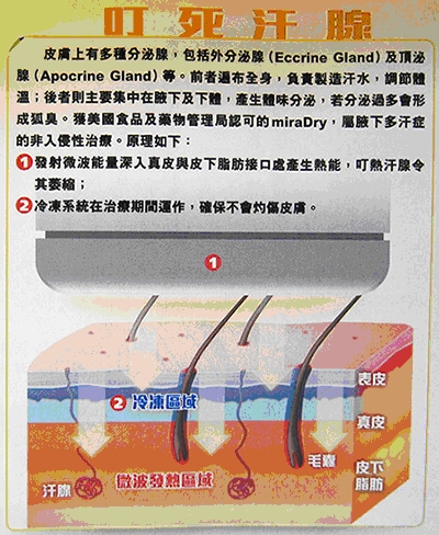 lasting)清除腋下汗腺醫療器材(Miradry)。患者平均經兩次治療後﹐便能顯著減少腋下出汗。 |