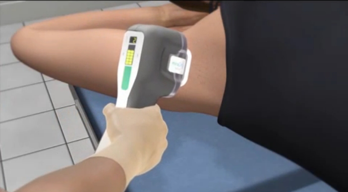 其後醫生會將機頭緊貼於腋下相關範圍以便逐部施行精確微波治療﹐亦會全程利用機頭的特殊裝置﹐持續冷卻皮膚﹐保護免受熱力灼傷。 |